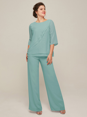 Mutterkleid Rundhalsausschnitt 3/4-Ärmel Zweiteilige Rüschen Bodenlanges Gastkleid für Hochzeit & Hochzeit > Abendkleider für Hochzeit > Brautmutterkleider