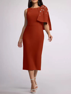 Mutterkleid Rundhalsausschnitt Ärmellos Etuikleid Schleifen Wadenlang Hochzeitsgastkleider & Hochzeit > Abendkleider für Hochzeit > Brautmutterkleider