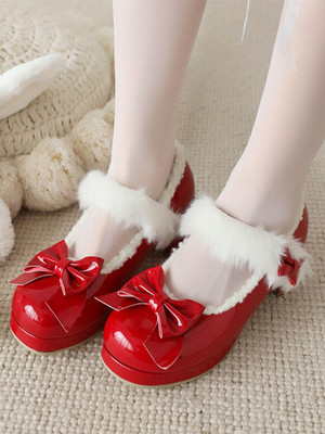 Süße Lolita-Schuhe mit roten Schleifen und runder Spitze aus PU-Leder & Lolita Kleidung > Lolita Schuhe