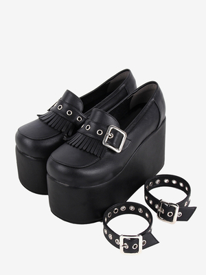 Süße Lolita-Schuhe Schwarze Lolita-Pumps aus PU-Leder mit Ketten und Keilabsatz & Lolita Angebote > Lolita Schuhe > Lolitaschuhe