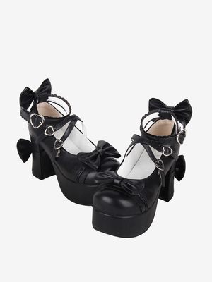 Süße Lolita-Schuhe Schwarze Lolita-Pumps aus PU-Leder mit Schleife und runder Spitze & Lolita Angebote > Lolita Schuhe > Lolitaschuhe