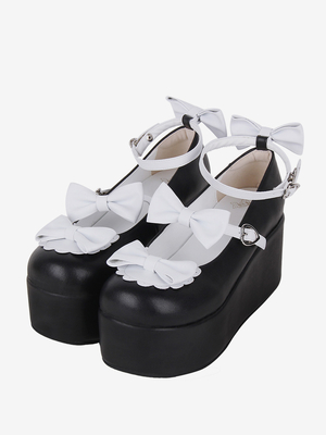 Süße Lolita-Schuhe; Schwarze Lolita-Pumps aus zweifarbigem PU-Leder mit Schmetterlingsmuster und Keilabsatz & Lolita Angebote > Lolita Schuhe > Lolitaschuhe