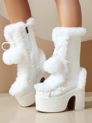 Süße Lolita-Stiefel aus Wildleder mit Schleifen und runder Spitze weiße Lolita-Schuhe & Lolita Kleidung > Lolita Schuhe