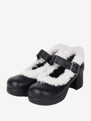 Süßes Lolita-Schuhwerk; Schwarze Lolita-Pumps aus PU-Leder mit klobigem Absatz & Lolita Angebote > Lolita Schuhe > Lolitaschuhe