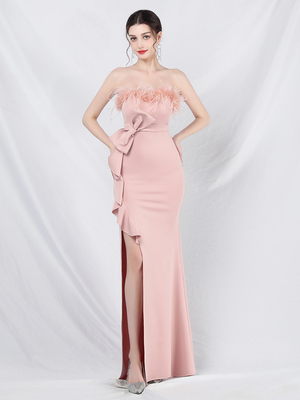 Schickes Partykleid mit Federschleife Rüschen und Kaskadenfalten trendiges Maxikleid & Damenmode > Kleider > Party Kleider