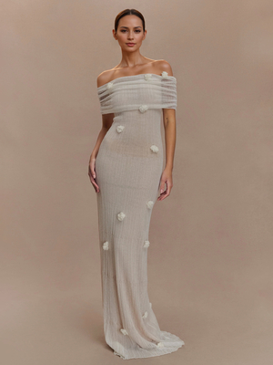 Schulterfreies Maxikleid mit floralen Akzenten für formelle Anlässe 2025 & Damenmode > Kleider > Party Kleider