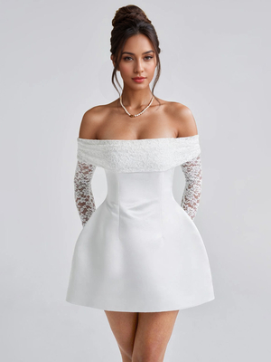 Schulterfreies Minikleid mit Spitze langärmliges A-Linien-Geburtstagspartykleid für Frauen 2025 & Damenmode > Kleider > Sommerkleider