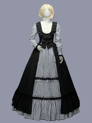 Schwarz Retro Kostüme Rüschen Polyester Streifen Kleid Damen Retro Tunika Marie Antoinette Kostüm Vintage Kleidung & Kostüme > Kostüme > Vintage Kostüme > Damen Mittelalter Kleidung