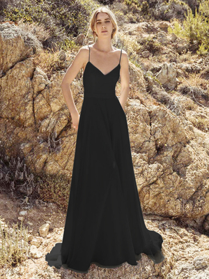 Schwarze Brautkleider A-Linie ärmelloses Chiffon-Brautkleid mit Schleppe & Hochzeit > Brautkleider > Schwarze Brautkleider > Brautkleider Schwarz