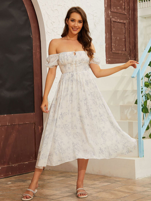 Wandelbares Kleid mit Blumenmuster Schnürung rückenfrei lässiges Sommer-Midikleid & Damenmode > Kleider > Blumenkleid