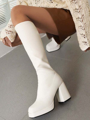 Weiße Knie High Stiefel Frauen PU Leder klobige Fersenknie -Länge Stiefel & Schuhe > Damen Schuhe > Stiefel > Kneestiefel
