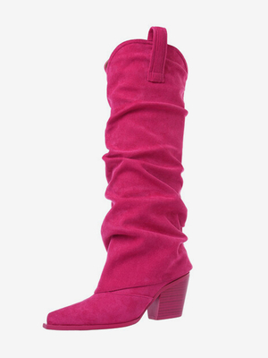 Wildleder-Slouch-Stiefel für Damen spitze Zehenpartie klobiger Absatz kniehohe Stiefel & Schuhe > Damen Schuhe > Stiefel > Kneestiefel