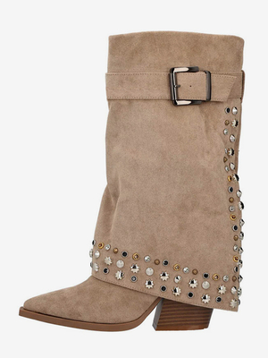 Wildlederstiefel mit mittelhohem Absatz spitzer Zehenbereich Nietenbesatz und Schnallendetaik & Schuhe > Damen Schuhe > Stiefel > Kurze Stiefel