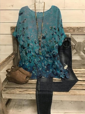 Damen Basics Geblümt Sommer Sport Lässig Weit Rundhals