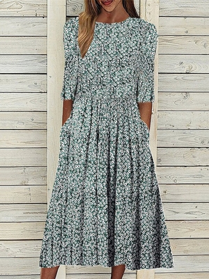 Damen Geblümt Sommer Urlaub Normal Mikroelastizität Maxikleid