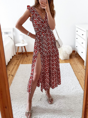 Kaufen Sie preiswert Kleider auf Modetalente online Geschäft, SPU: K8ODR37832E, Farbe: Rot, Ärmellänge: Flügelärmel, Gewicht: Regelmäßig.