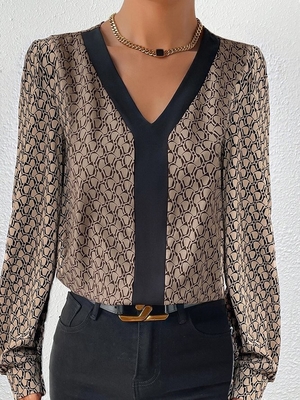 Kommen Sie zu Modetalente zu Kaufen Sie Shirts auf ein ermäßigter Preis, SPU: K81WSH7JCAA2, Farbe: Kaffee, Ausschnitt:V-Ausschnitt, Passform:H-Linie.