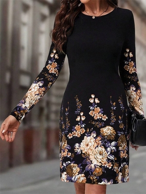 Damen Lässig Geblümt Frühling/Herbst Normal Weit Langarm Rundhals