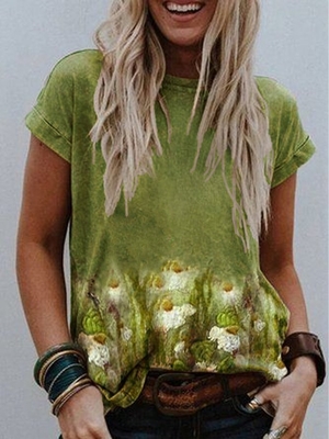 Kommen Sie zu Modetalente zu Kaufen Sie Blusen & Shirts auf ein ermäßigter Preis, SPU: K8ASH1QD1DD, Farbe: Grün, Sammlung:Große Größen, Material:Polyester Baumwolle.