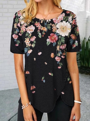 Damen Lässig Geblümt Sommer Leicht Täglich Lässig Kurzarm Weit