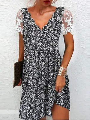 Damen Lässig Geblümt Sommer Polyester Normal Leicht