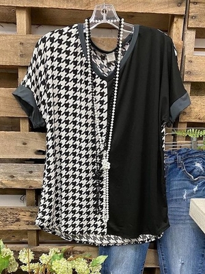 Kommen Sie zu Modetalente zu Kaufen Sie T-Shirt auf ein ermäßigter Preis, SPU: K81PSH288242, Farbe: Schwarz, Muster: Hahnentritt, Ärmellänge: Kurzarm.