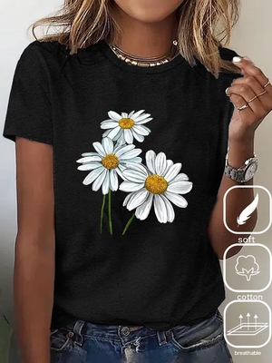 Damen Lässig Sommer Chrysantheme Kurzarm Rundhals Regelmäßig