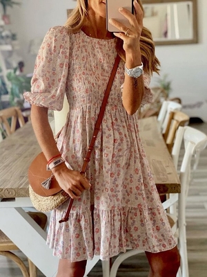 Geblümt Lässig Rundhals Kurzarm Sommerkleider ist modisch und billig, Kommen Sie zu Modetalente zu finden aus ca. das Kleidung