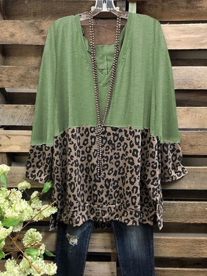 Lässig Frühling/Herbst Tierdruck V-Ausschnitt Mikroelastizität