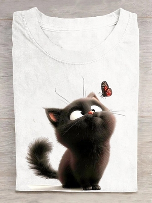 Lässig Sommer Katze Baumwolle Weit Rundhals Regelmäßig H-Linie Ja