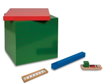 Der Kasten mit Würfeln und Quadraten enthält 9 Würfel und zahlreiche Quadrate bzw. quadratische Platten in den Montessorifarben von 1-9. Dieses vielseitige Material lässt Aufgabenstellungen auf ganz verschiedenen Levels zu. ...