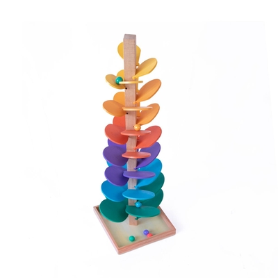 Im Klangbaum werden visuelle mit akustischen Reizen vereint. Eine Kugel wird auf das obere Ende des Bäumchens gesetzt und dabei beobachtet, wie es von Blättchen zu Blättchen durch die verschiedenen Farbzonen rollt und dabei eine hübsche Melodie erzeugt.