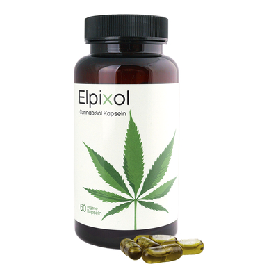 Nahrungsergänzungsmittel mit Cannabisöl in veganen Kapseln.