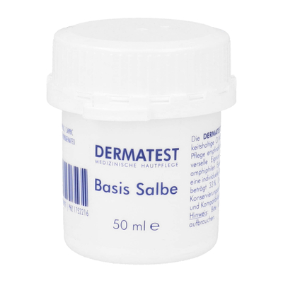 Produkteigenschaften: Dermatest Basissalbe Die DERMATEST Basis Salbe ist eine feuchtigkeitshaltige O/W-Emulsion und somit auch für die Pflege empfindlicher Haut geeignet. Durch ihre universelle E... ...