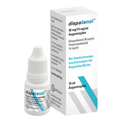 Wichtige Hinweise (Pflichtangaben): Dispatenol. Anwendungsgebiete: Zur symptomatischen Behandlung von Austrocknungserscheinungen der Hornund Bindehaut infolge von Tränensekretionsstörungen aufg... ...