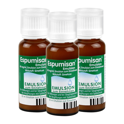 Wichtige Hinweise (Pflichtangaben): Espumisan® Emulsion. Wirkstoff: Simeticon. Anwendungsgebiete: Zur symptomatischen Behandlung gasbedingter Magen-Darm-Beschwerden, wie z. B. Blähungen (Mete... ...