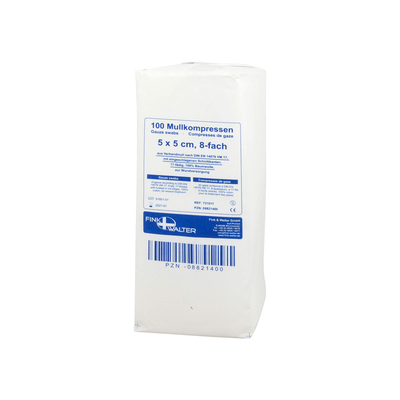 Produkteigenschaften: 17&ndashfädige Mullkompressen aus Verbandmull nach VM 17 DIN 14079 BW 100 % Baumwolle mit eingeschlagenen Schnittkanten eingesiegelt zu 20 Stück Anwendungsbeispiele... ...