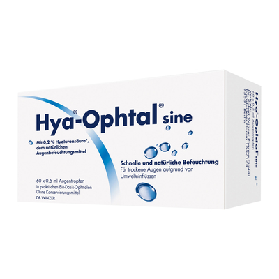 Produkteigenschaften: Hya-Ophtal sine Augentropfen Hya®-Ophtal® sine ist ein Augenbefeuchtungsmittel zur Benetzung und Nachbenetzung von harten und weichen Kontaktlinsen während des Tragens. Wie... ...