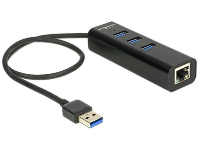 De LOCK Externer USB (Universal Serial Bus) 3.0 Hub 3 Port + Gigabit LAN
