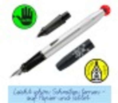 Das SWITCH Starter Schreiblern-Set von ONLINE, ausgestattet mit dem SWITCH Schreiblern-Füller und einem Schreiblern-Rollerball Griffstück, passt sich der individuellen Schreibvorliebe jedes Schreibanfängers flexibel an. Sowohl der Schreiblern-Füller mit stabiler Iridiumfeder A (Anfänger), als auch der robuste Rollerball sorgen für ein besonders weiches, flüssiges Schreib-Feeling. Das Nachfüllen erfolgt mit Standardpatronen und ist dadurch preiswert und einfach. Sein Gewicht ist ideal für alle Schreibanfänger im Schulalltag. Der SWITCH Starter besitzt außerdem eine hochwertige Stylus Spitze, die besonders soft und leitfähig über die kapazitiven Oberflächen von Tablets gleitet. Für das sichere Bedienen sorgen speziell angebrachte Griffzonen, die den Schreibanfänger bei seinen Schreibübungen auf dem Tablet unterstützen. Ergänzend zum Schreiblern-Set gibt es eine Schreiblern-App und ein Übungsheft für die Schreibanfänger. ONLINE entwickelte zusammen mit Pädagogen eine spezielle App für das Erlernen der Schreibschrift auf dem Tablet. In der Schreiblern-App „ONLINE Schreibreise“ begeben sich die Kinder auf Weltreise und besuchen verschiedene Länder der Erde. Jetzt ganz neu: Das lustige „ Klexxi“ Maskottchen auf der Kappe macht das Schreibgerät noch kindgerechter und lässt Kinderherzen höherschlagen. Bei der Auswahl aus sechs trendigen Metallic-Farben ist sowohl für Jungs, als auch für Mädchen bestimmt die Lieblingsfarbe dabei.