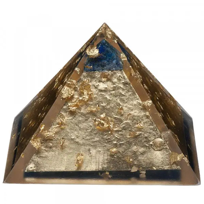 Die handgefertigte Gold- und Lapislazuli-Pyramide ist ein kleines Kunstwerk, dessen Schätze sich im Innern verbergen: Umhüllt von einer Kunstharz-Pyramide mit schimmerndem Blattgoldflocken, liegt darin, als Kern eingebettet, eine kleinere mit Blattgold vergoldete Pyramide aus Orgonit, deren Spitze ausgespart und mit Bröckchen aus Lapislazuli veredelt ist. Am Boden der Orgon Pyramide befindet sich zusätzlich ein vergoldetes Kreuz mit afrikanischer Kräutermedizin (Muti). Maße: 100 x 100 x 85 mm (Länge x Breite x Höhe) Gewicht: 350 g Herkunft: Südafrika Produkthinweis: Bei unseren Orgongeneratoren handelt es sich um handgefertigte Produkte, die teils Abweichungen zu den Produktbildern aufweisen können. Wir überprüfen alle Produkte vor dem Versand; kleinere Schönheitsfehler sind dabei für uns kein Ausschlusskriterium, da diese die Funktionsweise der Produkte keinesfalls...