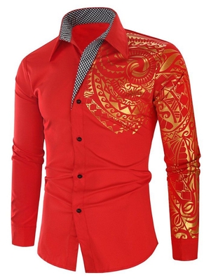Glitter Totem Pattern Plaid Print Long Sleeve Shirt ...