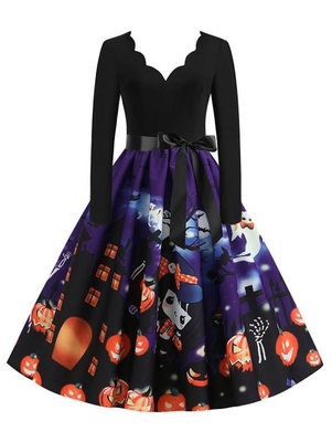 Scalloped Collar Pumpkin Long Sleeve Halloween Dress ...