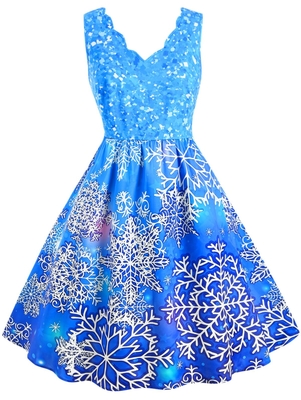 Scalloped Collar Snowflake Print Christmas Plus Size Dress ...