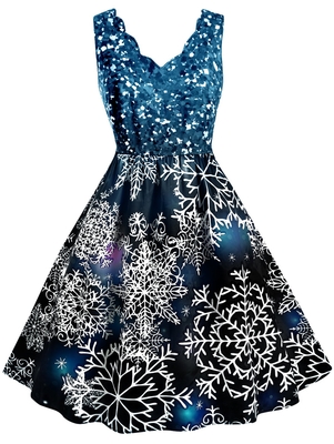 Scalloped Collar Snowflake Print Christmas Plus Size Dress ...