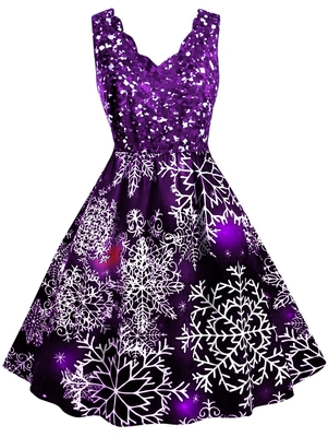 Scalloped Collar Snowflake Print Christmas Plus Size Dress ...