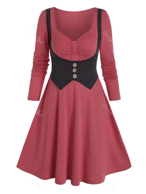 Sweetheart Neck Mock Button Long Sleeve Mini Dress