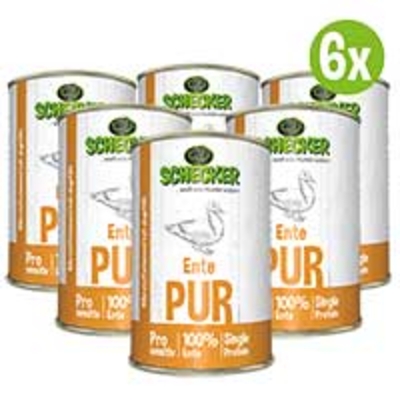 - auch für empfindliche bis sehr empfindliche Hunde getreidefrei glutenfrei geeignet zum BARFen* Ausgewählte Stücke zu 100% von der Ente in bester Qualität. Nur aus frischem Fleisch und wertvollen Innereien, wie Leber, Lunge, Magen etc.. Echte, reine Qualitätsware! Frei von billigen Füllstoffen wie Soja etc., frei von Haltbarkeits-, Farb-, Konservierungs- und sonstigen Stoffen. Einfach nur Fleisch. Das Besondere an unserem PUR ist die selektive Komposition der Fleischsorten in einer Dose. Die Fleischsorten einer Tierart, wie Muskelfleisch, Herz, mineralreiche Leber werden so zusammengestellt, dass das Ergebnis ein aus ernährungsphysiologischen Aspekten rundum versorgendes, hochwertiges Alleinfutter ist. Also ein Dosenfutter, das obwohl nur von einer Tierart, doch alles enthält, was der Hundekörper für eine dauerhafte, gesunde Ernährung und optimale Fitness benötigt! PUR ist geeignet zum BARFen*, als Ausschlussdiät bei Futtermittelunverträglichkeiten oder einfach zum gezielten Füttern empfindlicher Hunde (-rassen). Auch zum Mixen z.B. mit unserem glutenfreien Sensi-Mix, unseren Gemüse PUR Dosen oder einer unserer vielen anderen Gemüse- oder Cerealienkomponenten geeignet. *biologisch artgerechtes rohes Futter