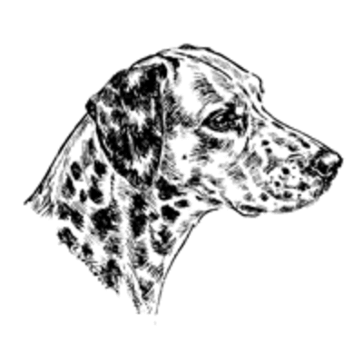Selbstklebende, transparente Autoaufkleber mit schwarzer Federzeichnung in Konturenform des Hundes. Größe: ca. 15 cm, je 1 Stück