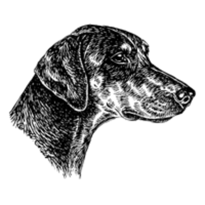 Selbstklebende, transparente Autoaufkleber mit schwarzer Federzeichnung in Konturenform des Hundes. Größe: ca. 15 cm, je 1 Stück